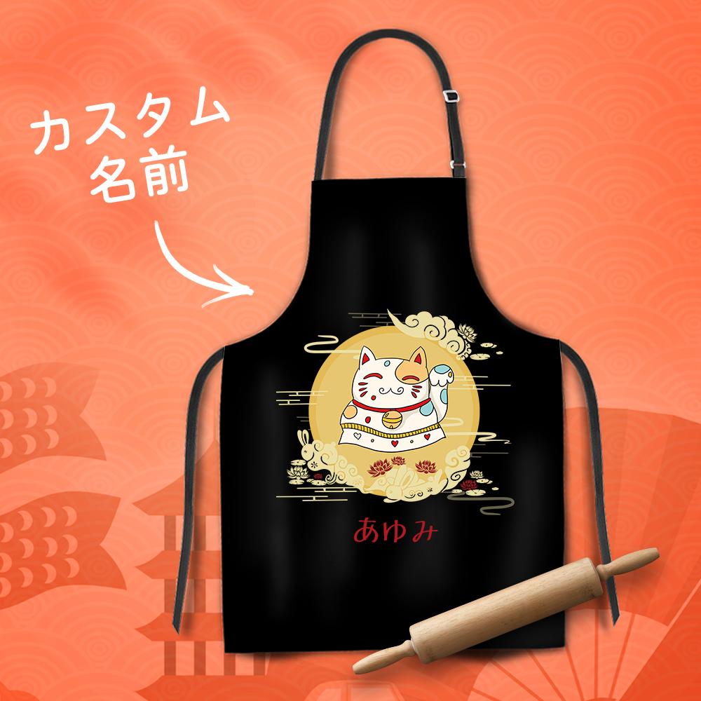 カスタム名前エプロン-写真入れ可能なキッチン首掛け式エプロンギフト-招き猫