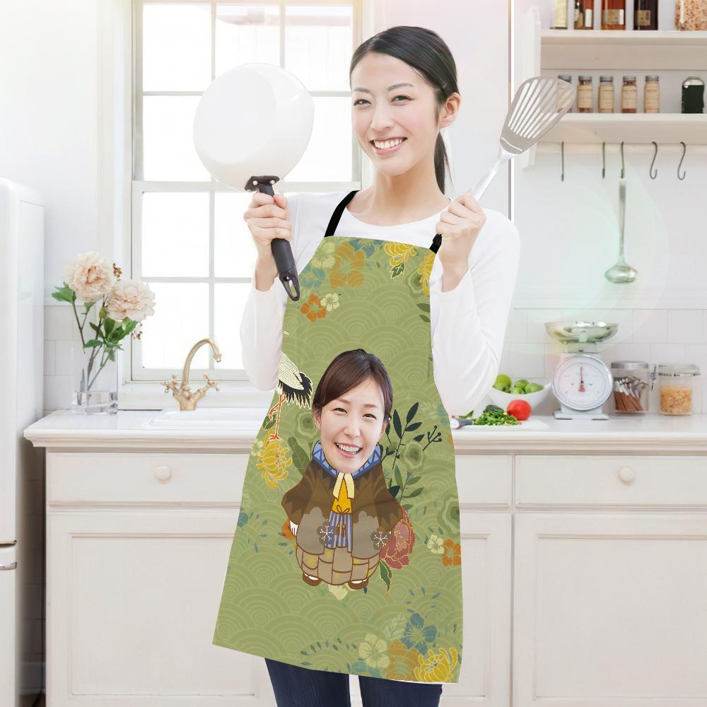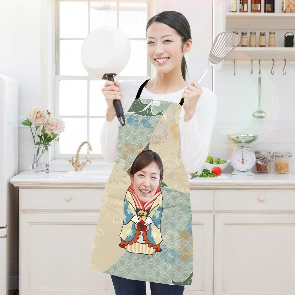 カスタムフォトエプロン-写真入れ可能なキッチン首掛け式エプロンギフト-和柄着物