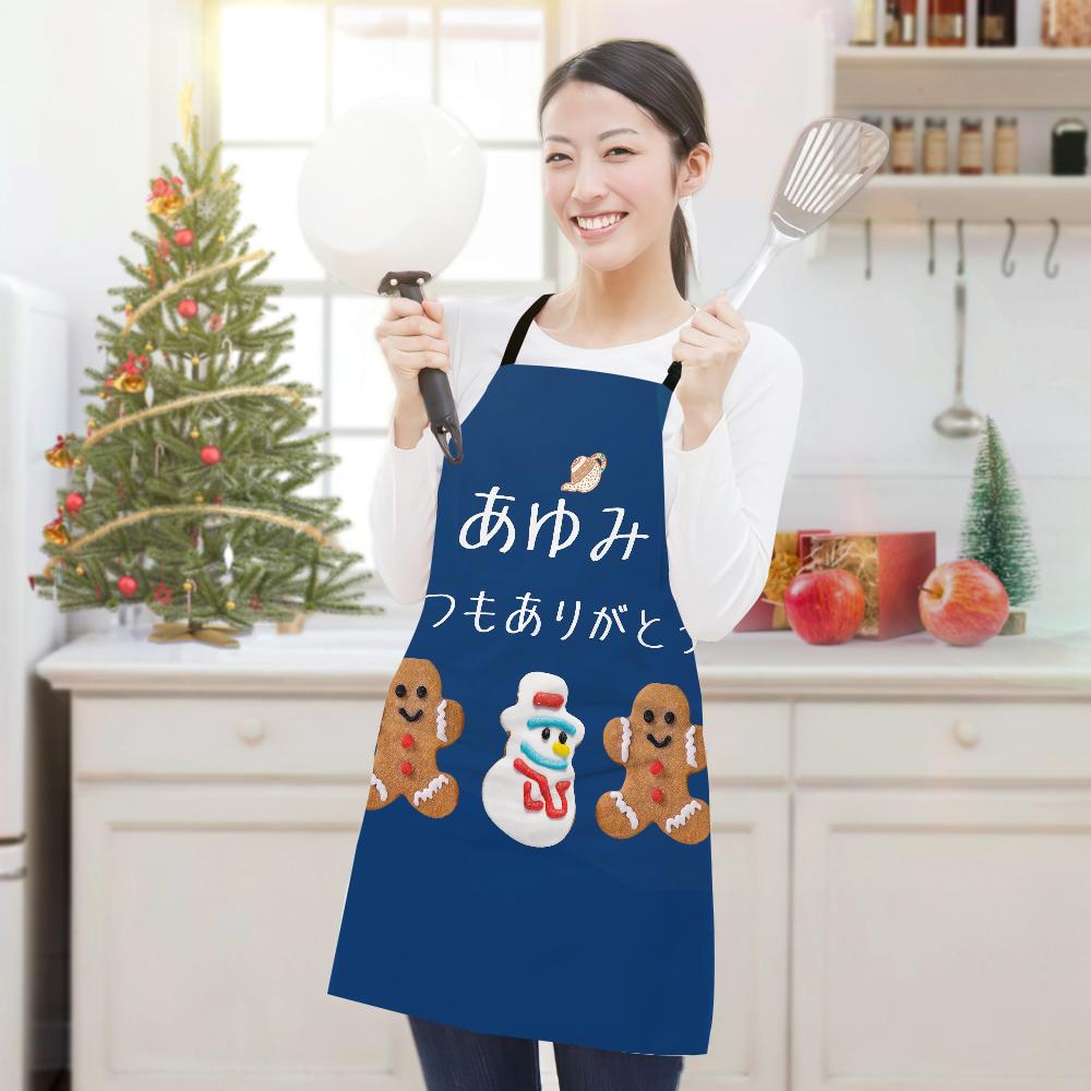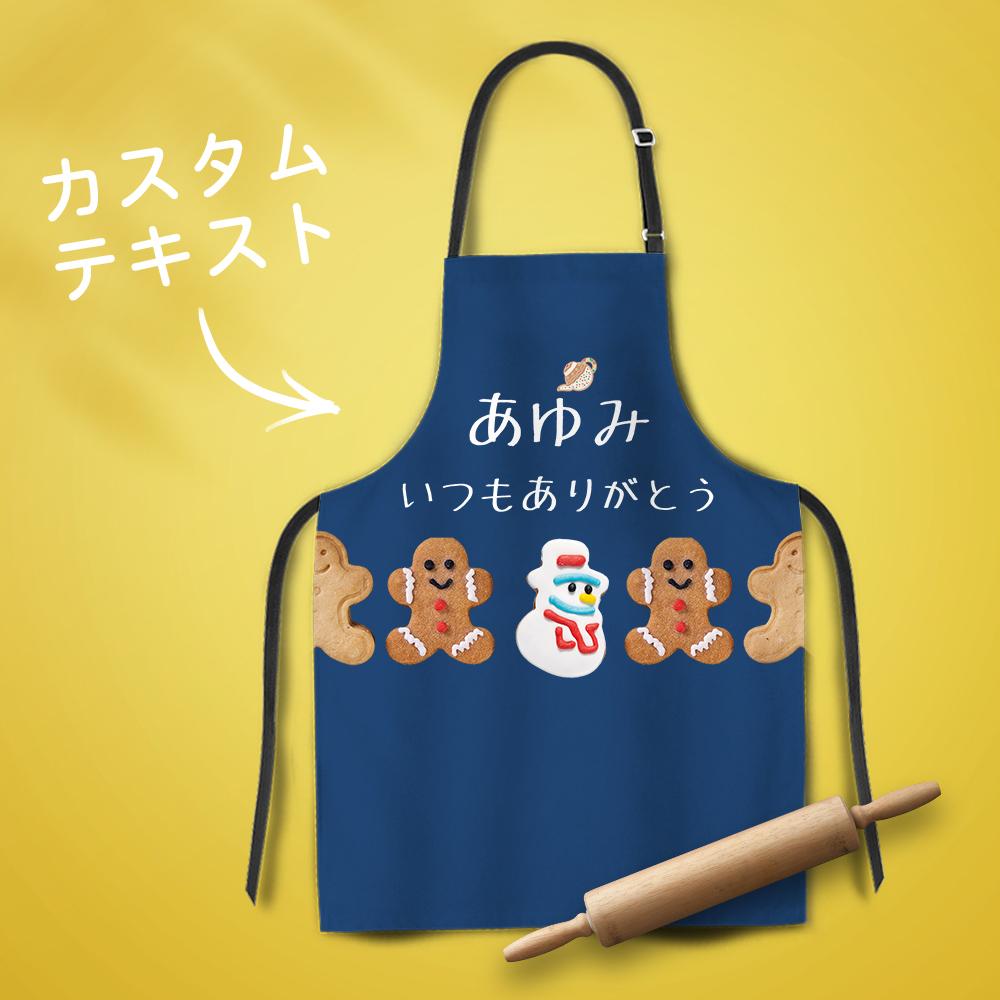 カスタム名前エプロン-テキスト入れ可能なキッチン首掛け式クリスマスエプロンギフト-ジンジャーブレッド人
