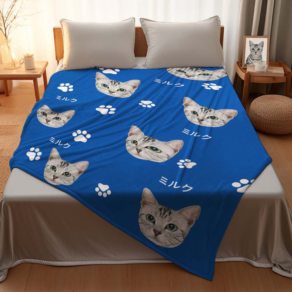 カスタム写真ブランケット-可愛いペット写真や名入れ可能な可愛い爪柄のフリース毛布ギフト