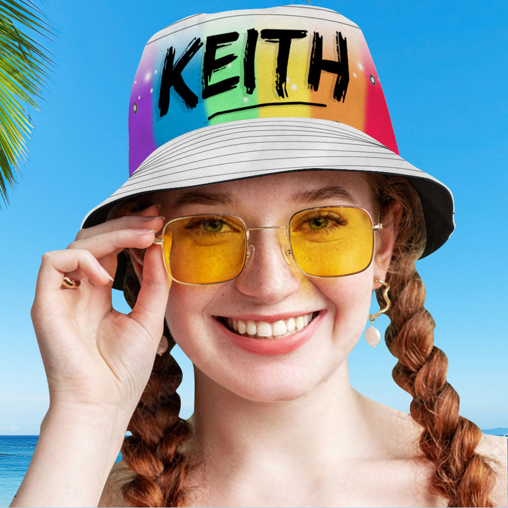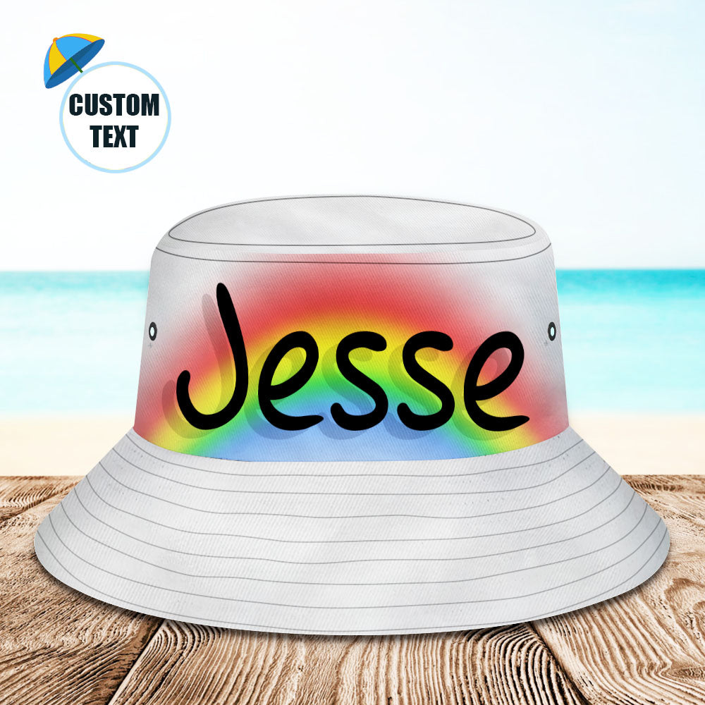 カスタムバケットハット-名入れ可能な男女兼用日よけ帽子プレゼント - 虹