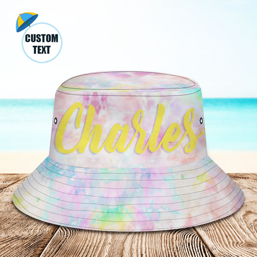 カスタムバケットハット-名入れ可能な男女兼用日よけ帽子プレゼント - エアブラシ・レインボー