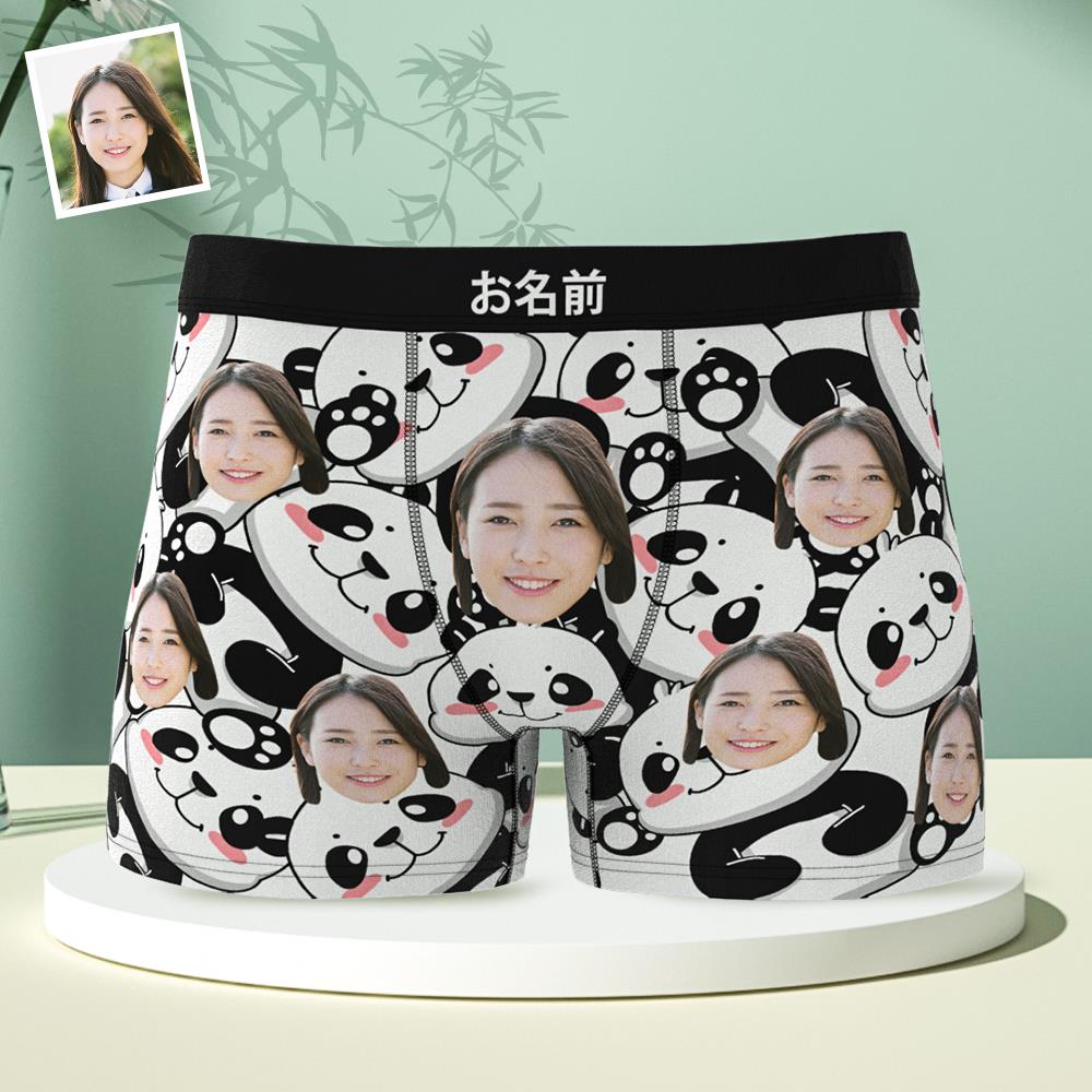 カスタムフォトボクサーパンツ-写真とテキスト入れ可能な超可愛いパンダの下着彼氏や旦那へのギフト