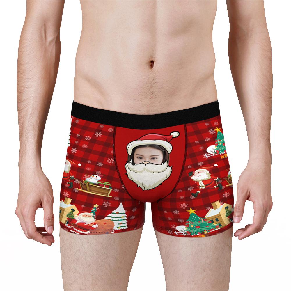 クリスマスプレゼント写真入りオリジナルボクサーパンツ-メンズカスタムクリスマスボクサーショーツ