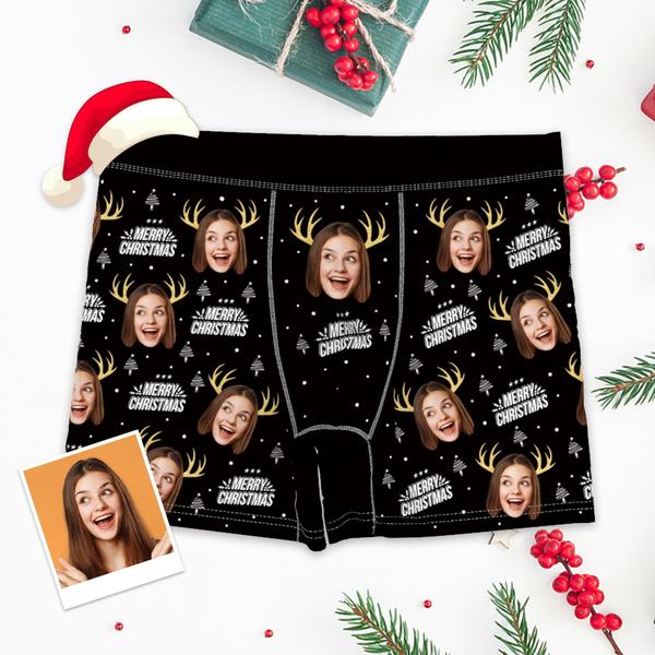 クリスマスプレゼント写真入りオリジナルボクサーパンツ-メンズメリークリスマスカスタムフェイスボクサーショーツ