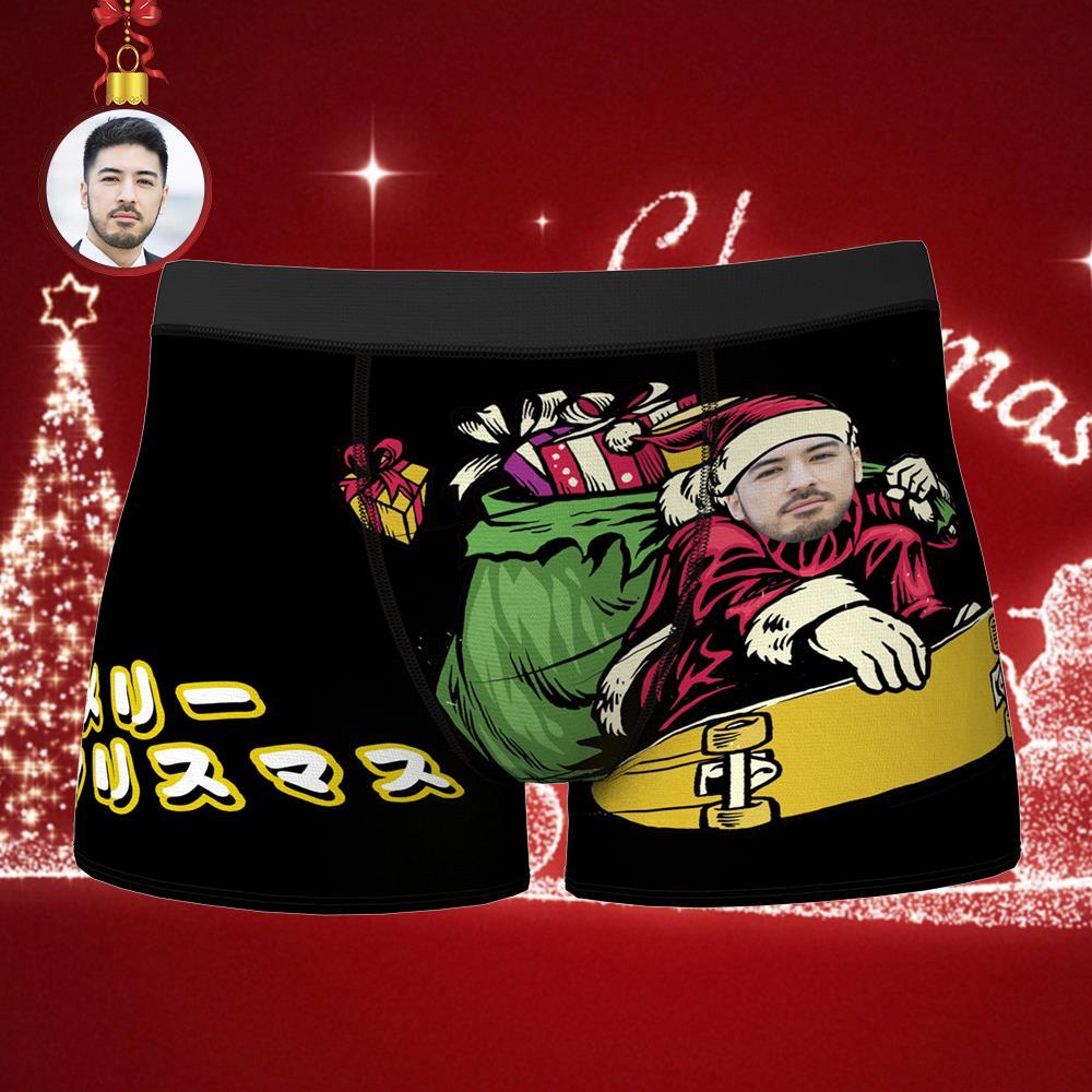 カスタムフォトボクサーパンツ-写真入り可能なスケートボードサンタ柄下着父さんや彼氏へのクリスマスプレゼント