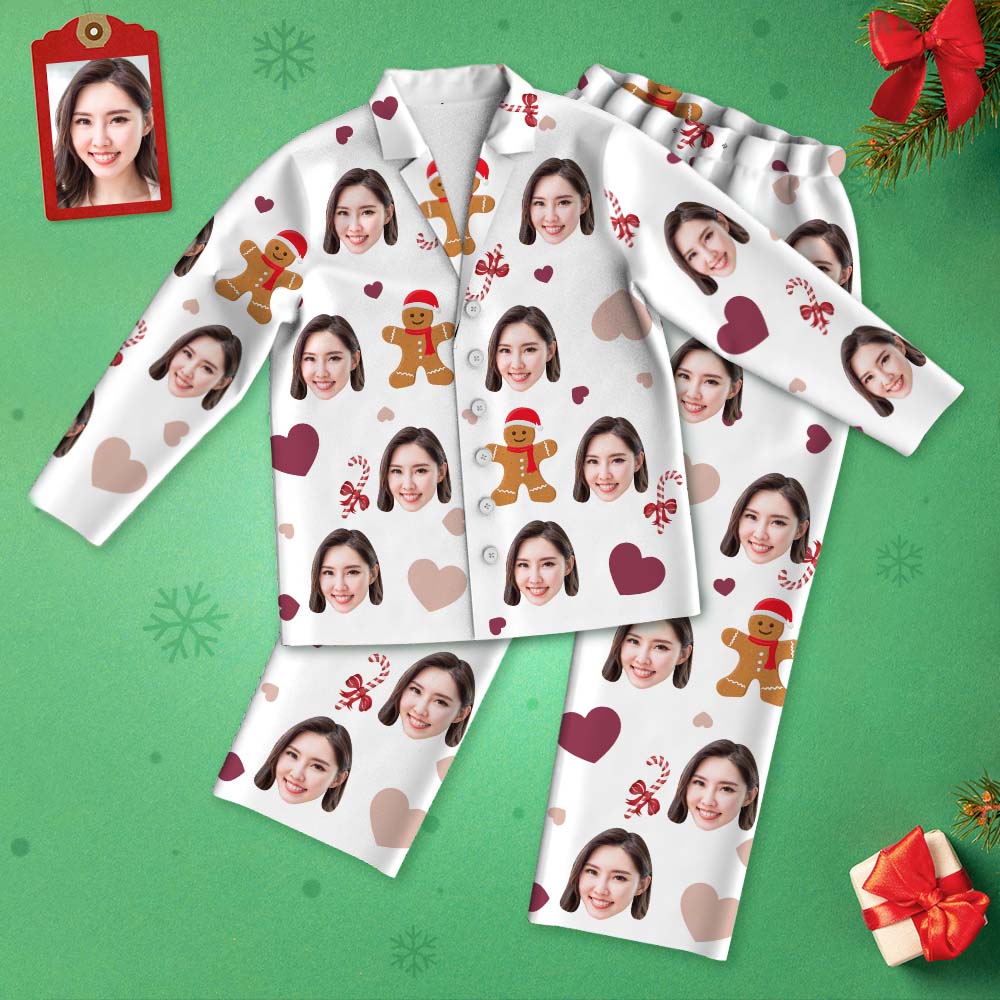 カスタムフォトパジャマ-写真入れ可能なオリジナルクリスマスクジンジャーブレッド柄パジャマクリスマスギフト