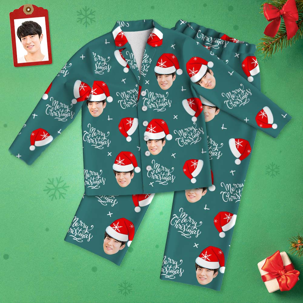 カスタムフォトパジャマ-写真入れ可能なオリジナルクリスマス雪のサンタ帽柄パジャマクリスマスギフト