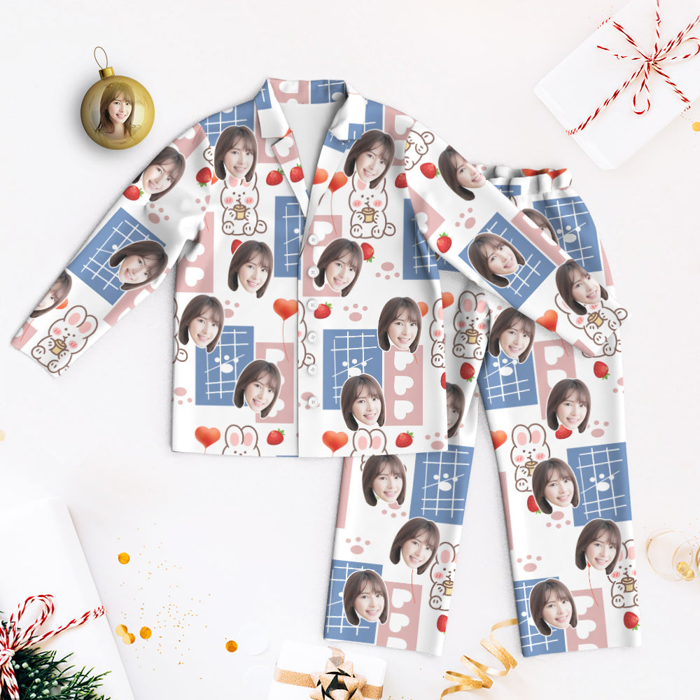 カスタムフォトパジャマ-写真入れ可能なオリジナル超可愛いイチゴうさぎ柄のパジャマプレゼント彼女への素敵なギフト
