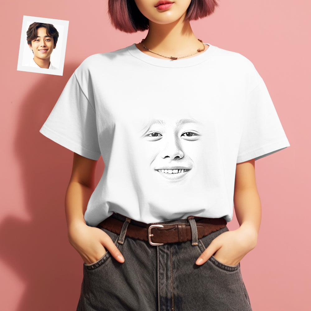 カスタムフォトTシャツ - 写真入れ可能な面白いオビエル顔T-SHIRTプレゼント