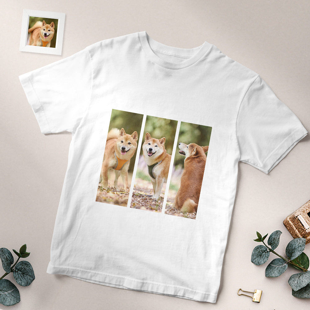 カスタムフォトTシャツ - 写真3枚入れ可能なペット写真T-SHIRTプレゼント