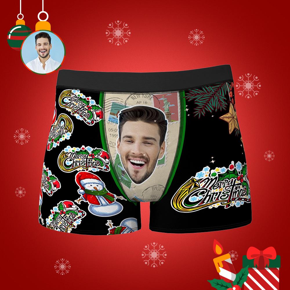 カスタムフォトボクサーパンツ-写真入れ可能なオリジナルクリスマス顔下着ショーツギフト-メリークリスマス