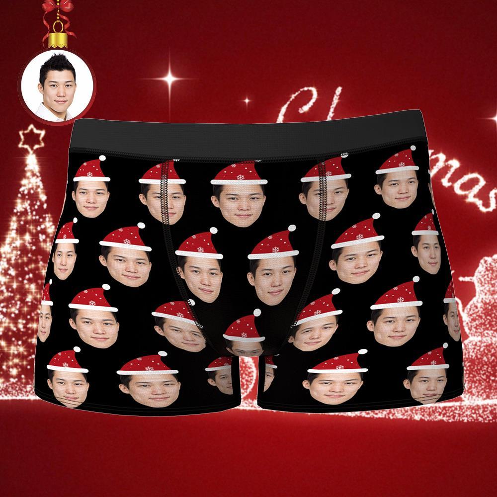 カスタムフォトボクサーパンツ-写真入り可能なオリジナル下着-クリスマスプレゼント男性用クリスマスハット付き