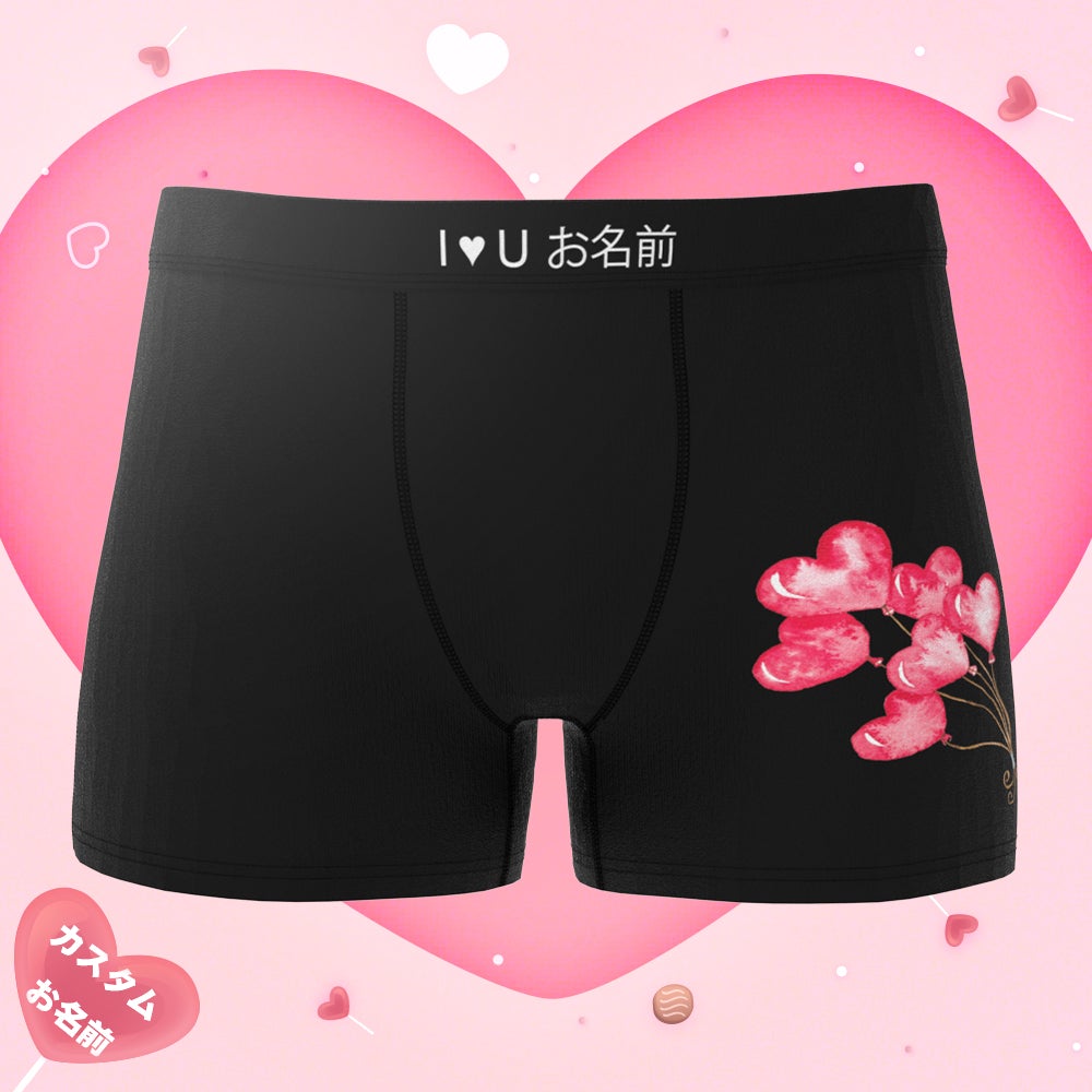 カスタムフォトボクサーパンツ-名入れ可能なハート風船柄の下着彼氏や旦那へのバレンタインギフト