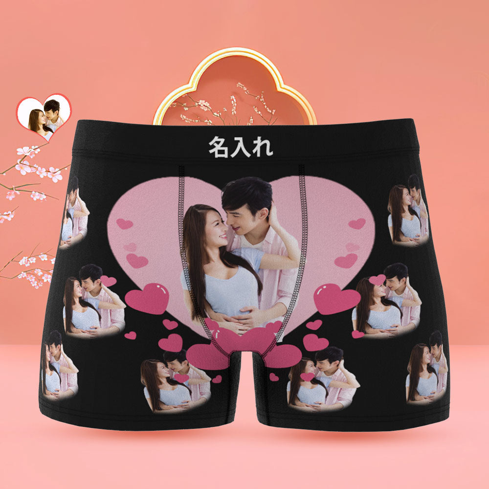 カスタムフォトボクサーパンツ-写真入り可能なオリジナル下着Love印-カップルスタイルバレンタインプレゼント