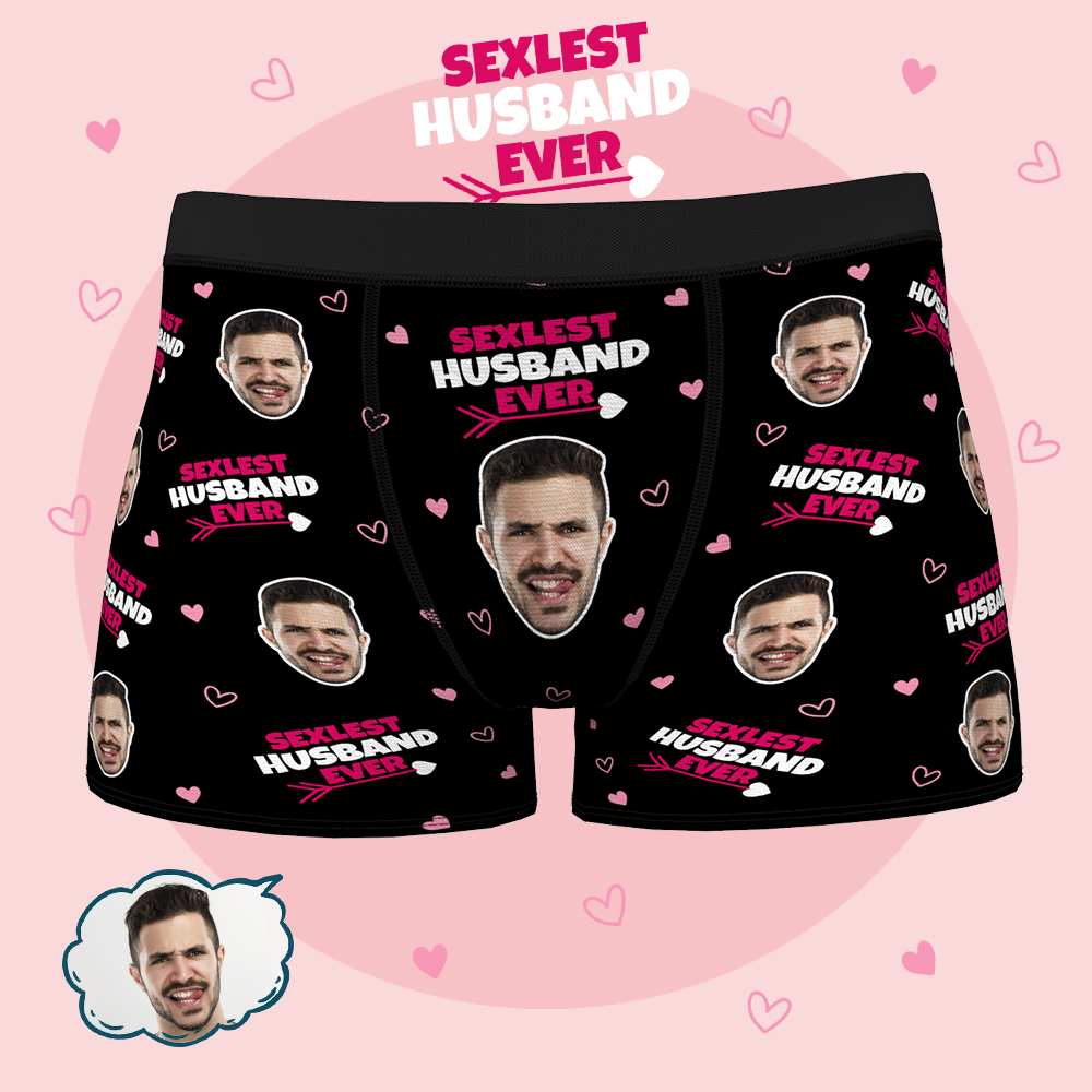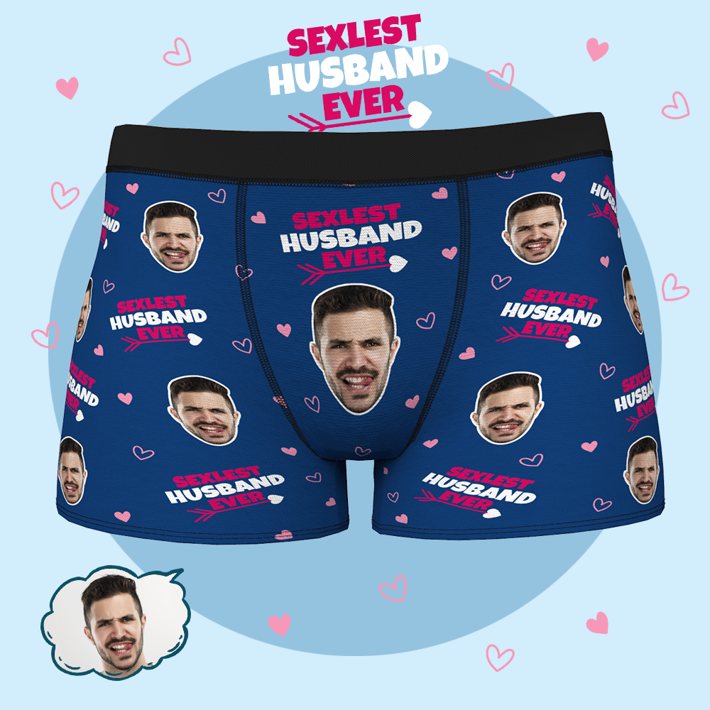 男性の夫の下着のためのカスタムパーソナライズされたフェイスボクサーブリーフ-これまでで最もセクシーな夫