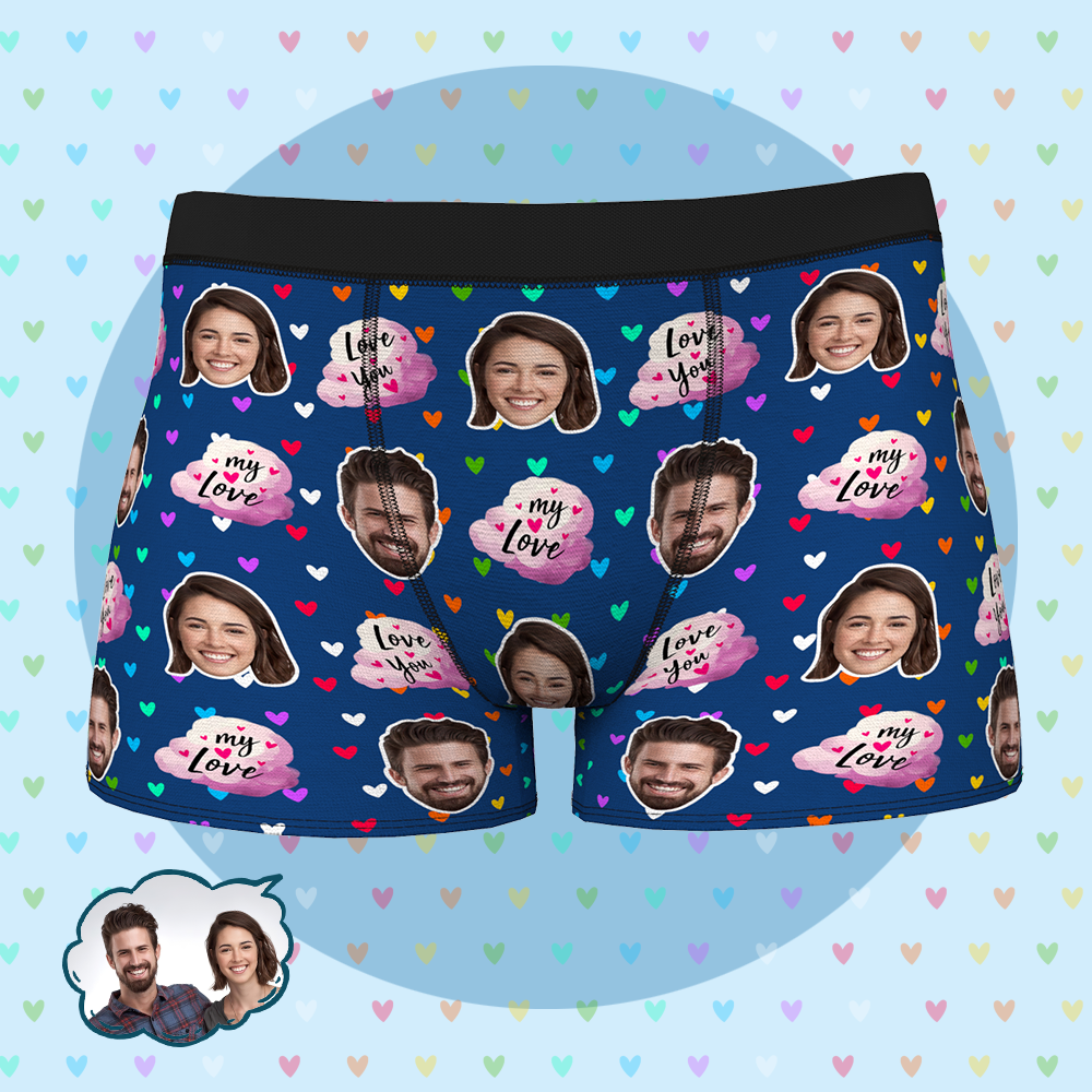 男性の夫のボーイフレンドの下着のためのカスタムパーソナライズされたフェイスボクサーブリーフ-MYLOVE