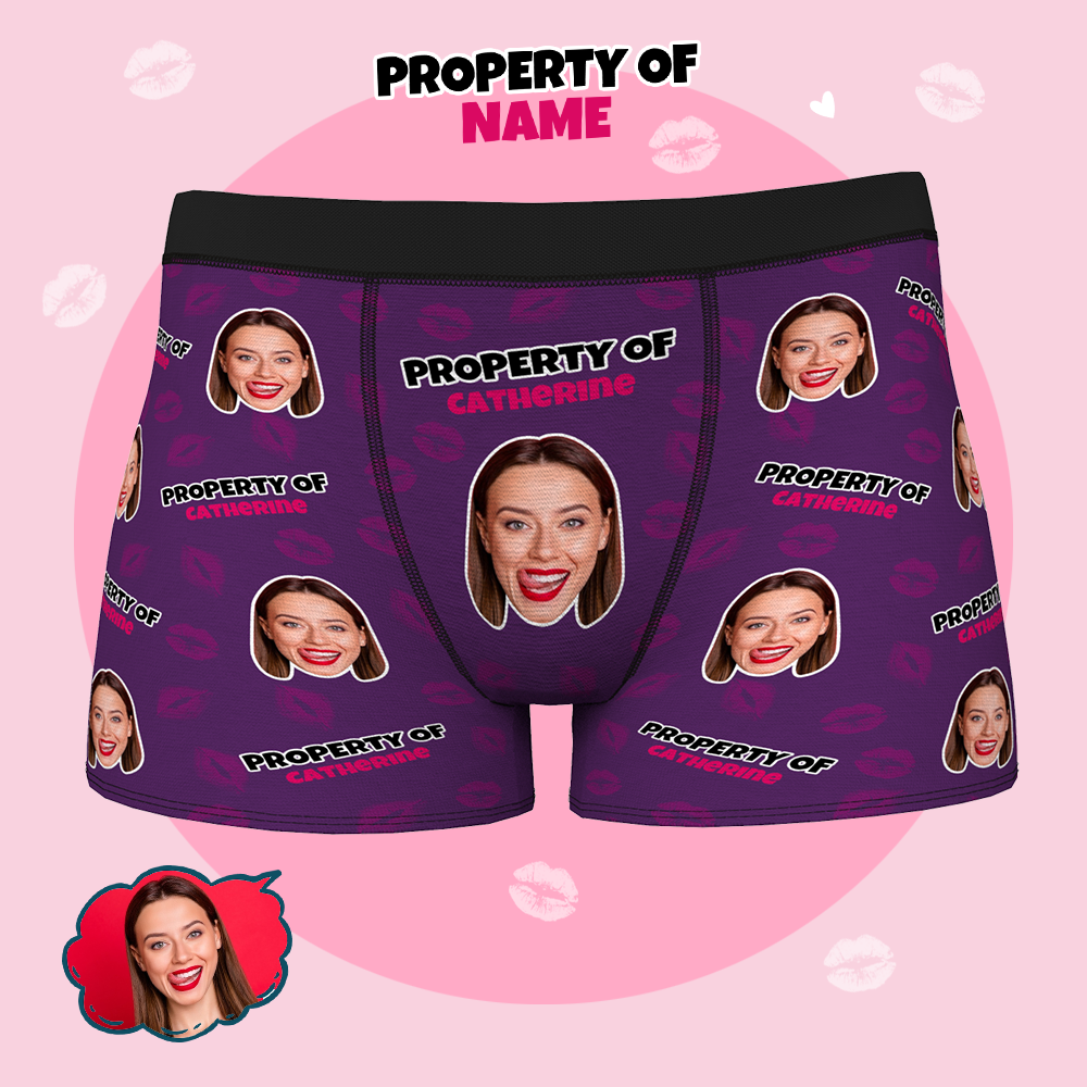 カスタム写真入り下着、赤い唇の模様がプリントされた、カップルへのユニークでセクシーなギフト。写真入りのパーソナライズされたバレンタインデー用下着。