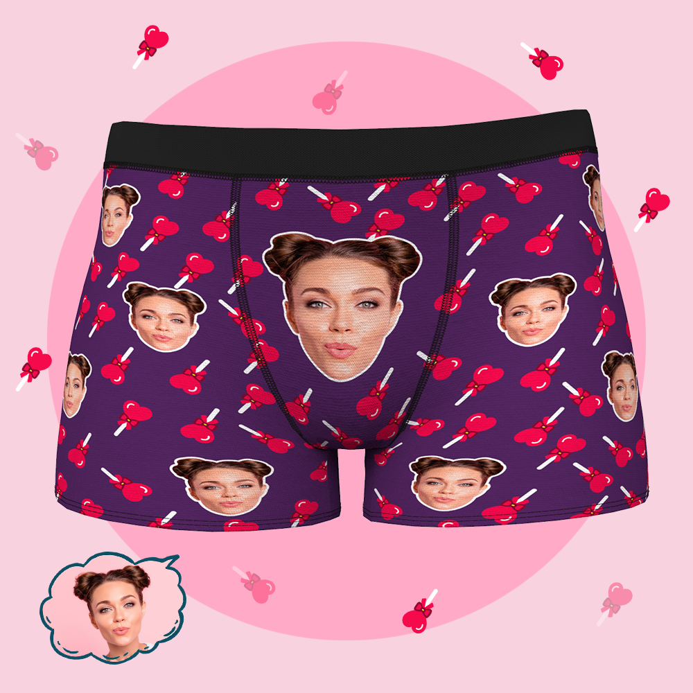 男性の夫のボーイフレンドの下着のためのカスタムパーソナライズされたフェイスボクサーブリーフ-ハートロリポップ