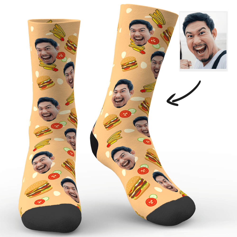 カスタムフォトソックス-写真入り可能なオリジナル靴下バーガー印