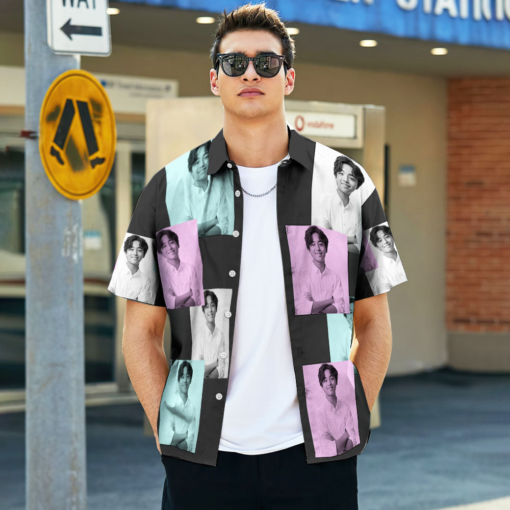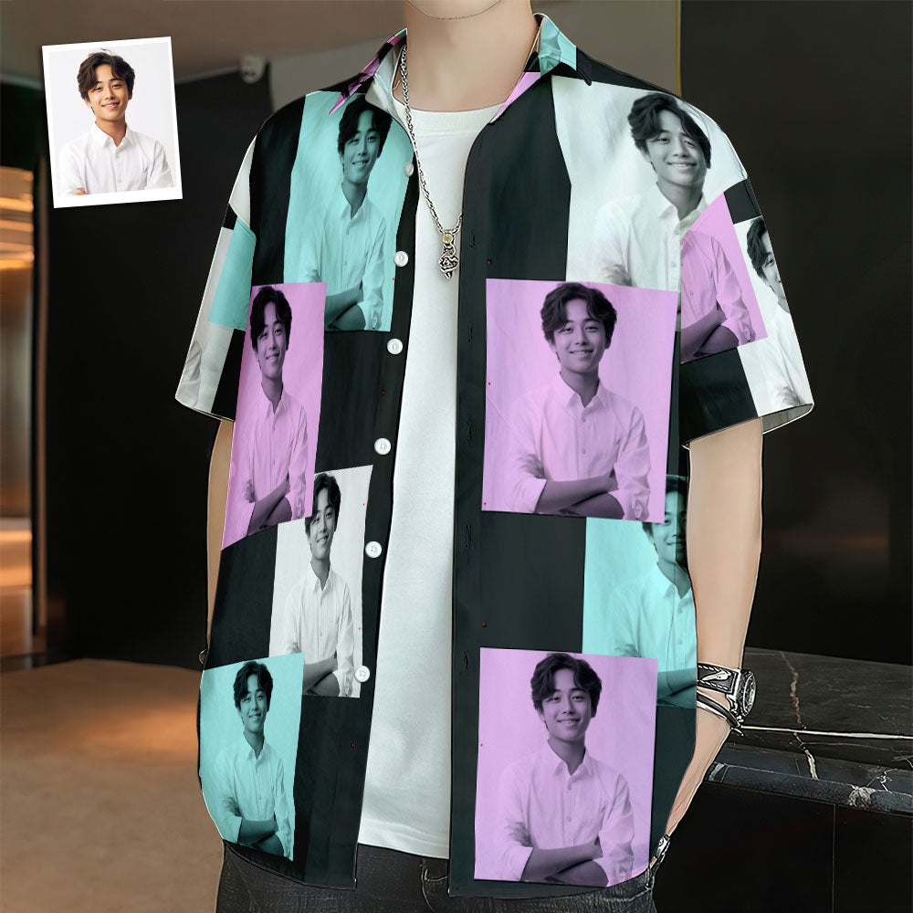 カスタムフェイスシャツ - パーソナライズされた写真彼へのメンズアロハシャツギフト