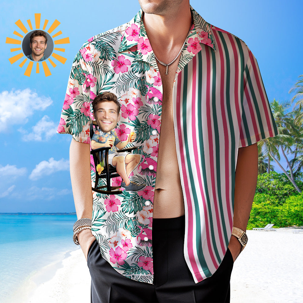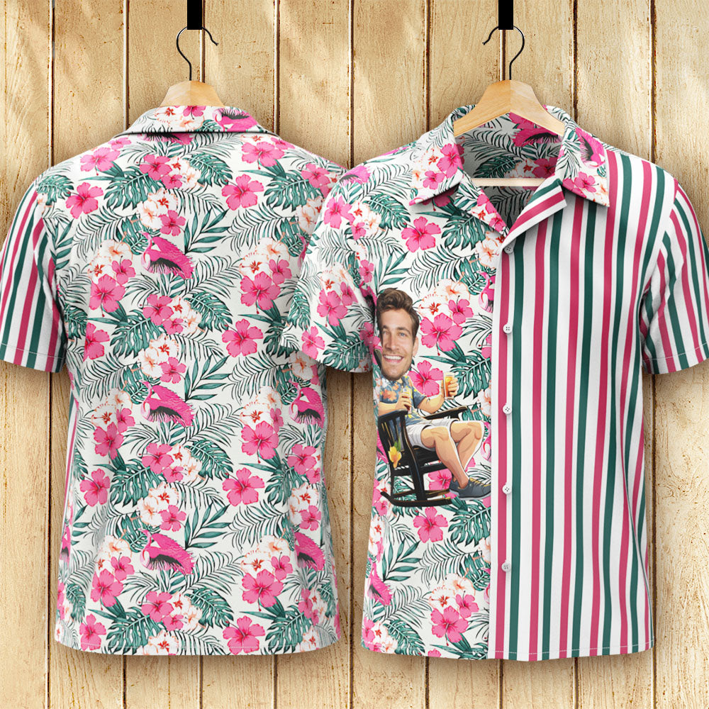 カスタムフェイスハワイアンシャツ - 写真入れ可能なオリジナルアロハシャツ - フラミンゴ
