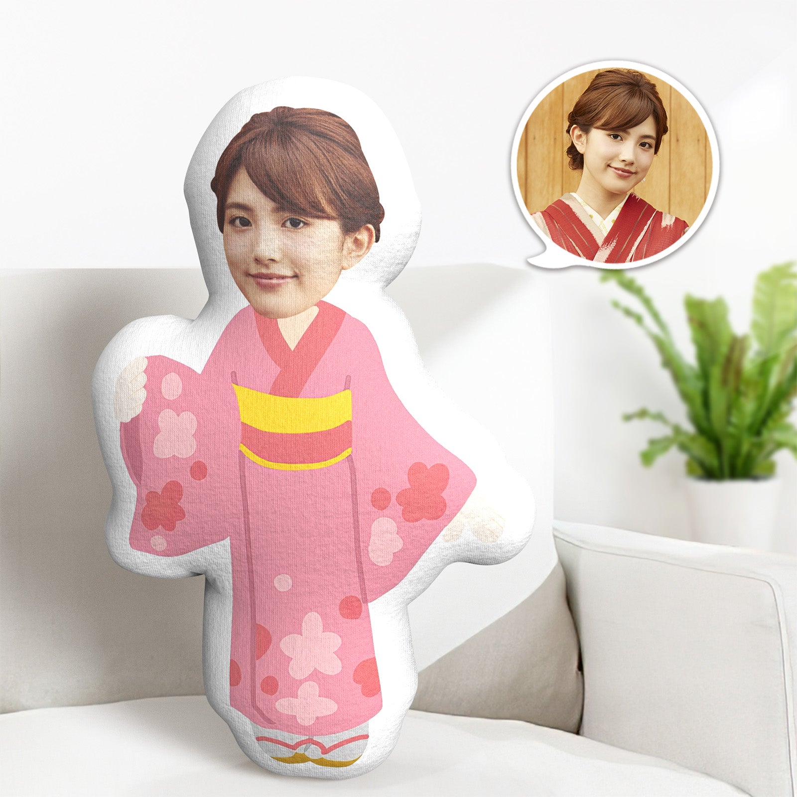 可愛い浴衣の女の子ミニム枕カスタムフェイスクッション写真入れ可能なミニム抱き枕花火大会記念ギフト