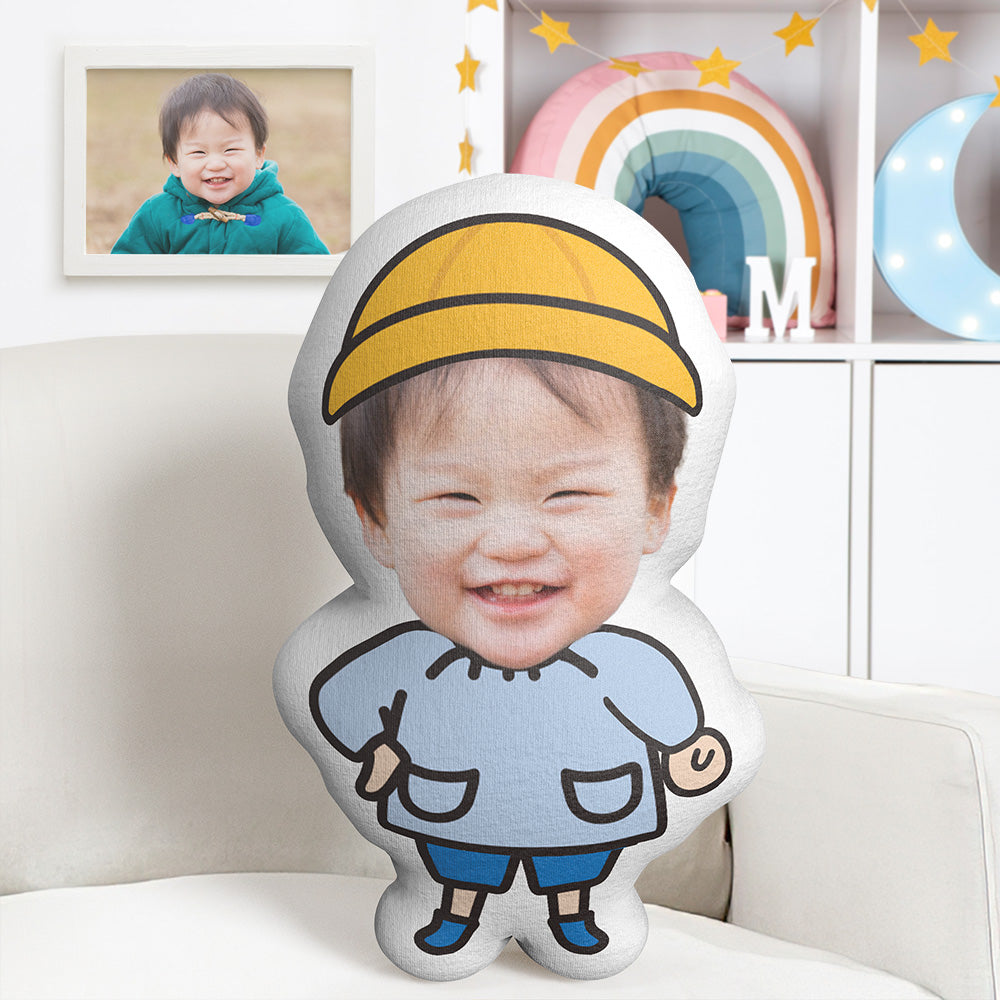 かわいい赤ちゃんミニム枕カスタムフェイスクッション写真入れ可能なミニム抱き枕青いベビー服の赤ちゃん