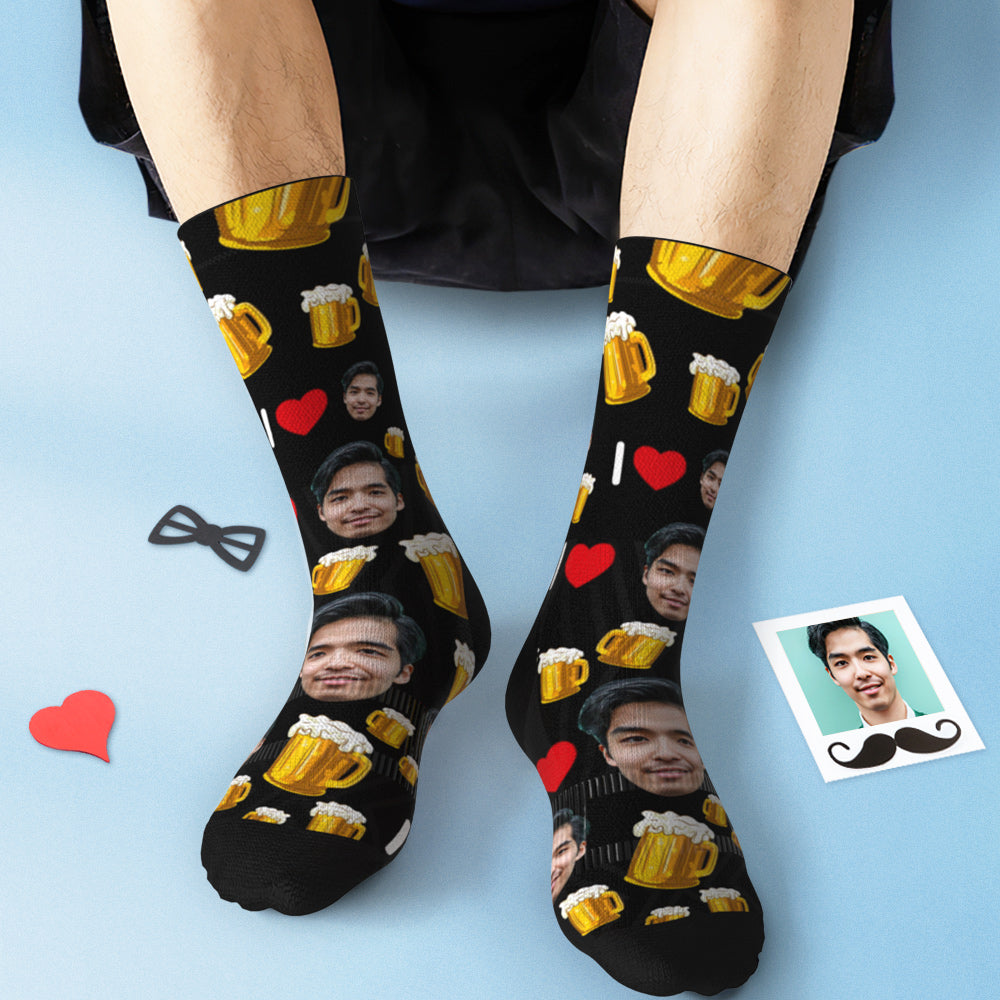 カスタムフォトソックス-写真入れ可能な父の日の靴下プレゼント-ビールが大好き