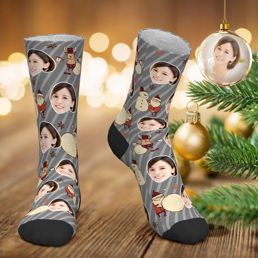 カスタムフォトソックス-クリスマスファニーフェイス靴下サプライズギフト