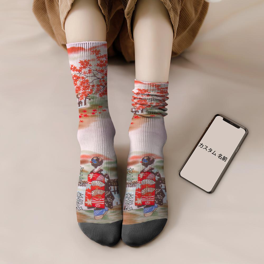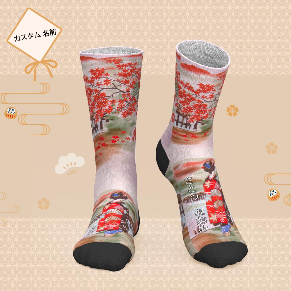 カスタム名前ソックス-名前入り可能なオリジナル靴下-もみじとまいこ