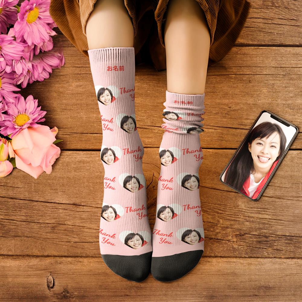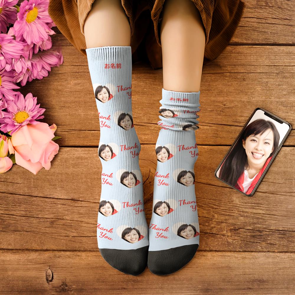 カスタムフェイスソックス-写真入り名入れ可能なオリジナル靴下母の日プレゼント-ありがとう