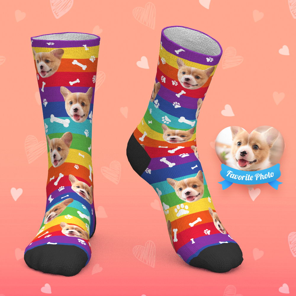カスタム レインボー ソックス犬の骨の足の印刷要素をテキストで