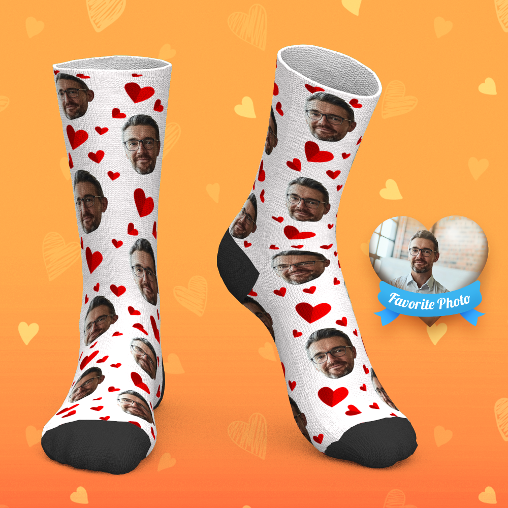 カスタム ラブ ハート フェイス ソックス あなたのテキストでパーソナライズされたファニー ソックス