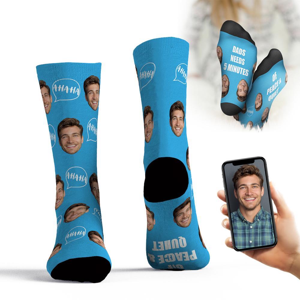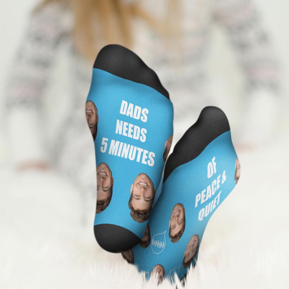 父の日ギフト写真入り名入りカスタムフェイスソックス - お父さんは5分間の平和と静けさを必要とします