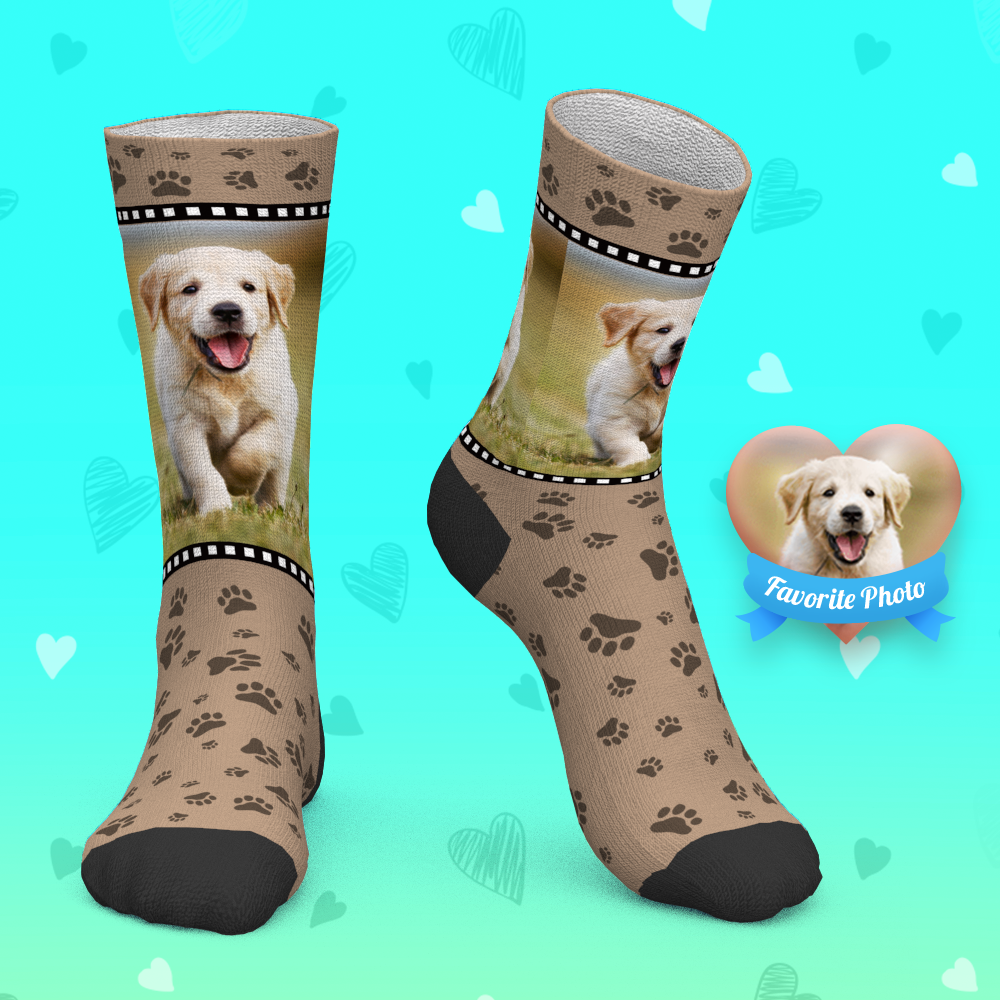 カスタムかわいい犬の足跡の顔の靴下