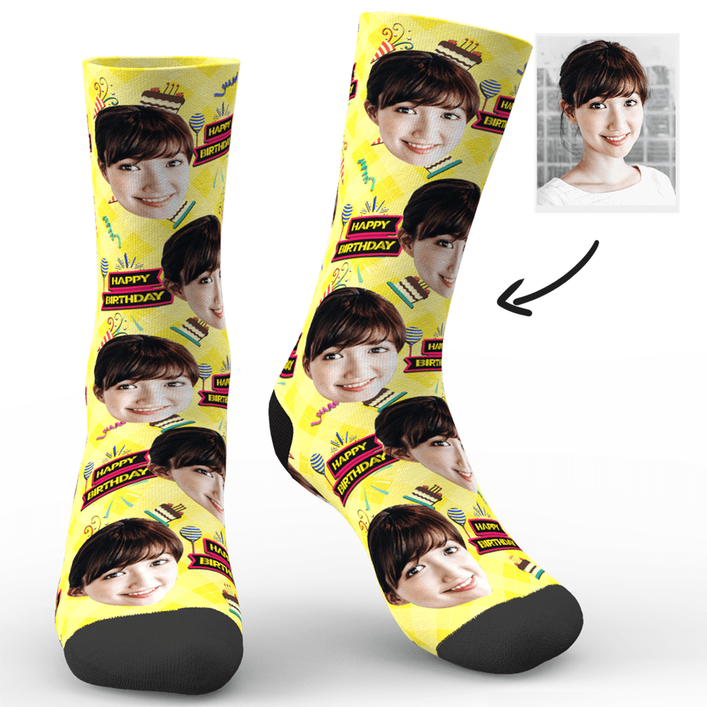 カスタムフォトソックス-写真入り可能なオリジナル靴下誕生日プレゼントハッピーな誕生日を!