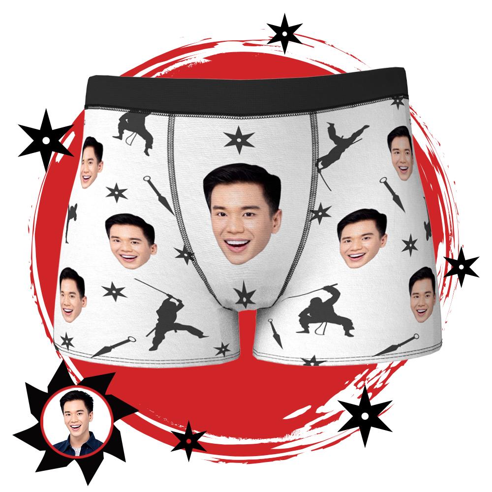 カスタム男性ボクサー-パーソナライズされた下着-写真入れ可能な忍者柄のボクサーギフト
