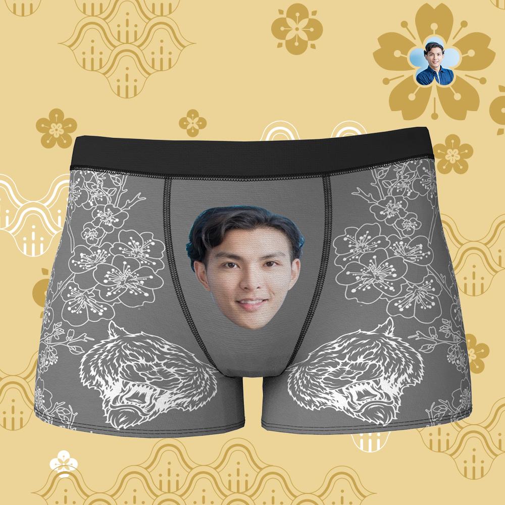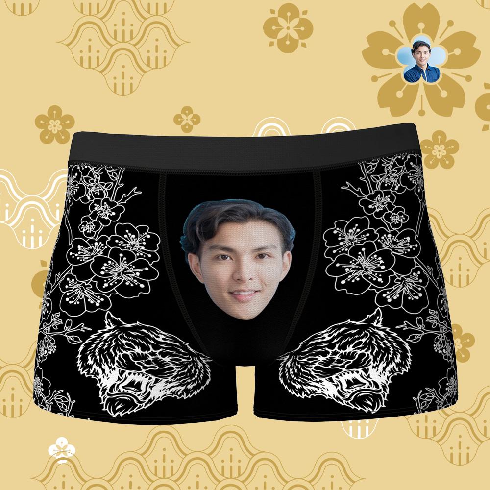 カスタムフォトボクサーパンツ-写真入り可能な虎柄オリジナル下着新年のプレゼント