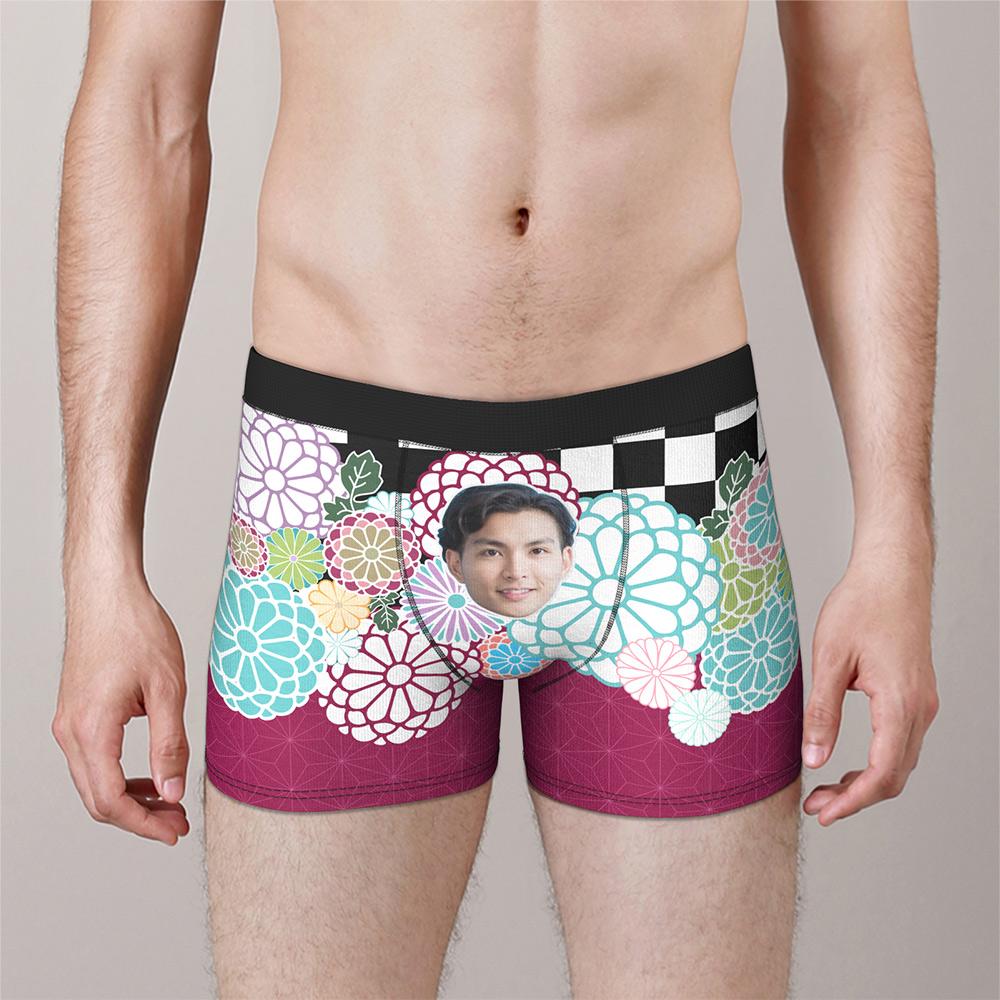 カスタムフォトボクサーパンツ-写真入り可能な花柄下着父さんや彼氏への新年のプレゼント