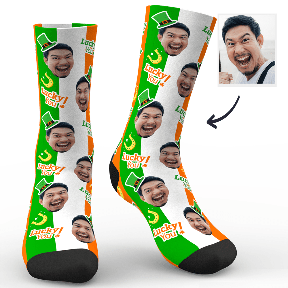 カスタムフォトソックス-写真入り可能なオリジナル靴下聖パトリックの日ラッキーな君を!