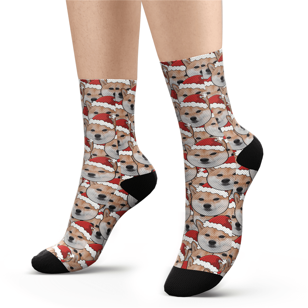 カスタムフォトマッシュソックス 犬 サンタの帽子