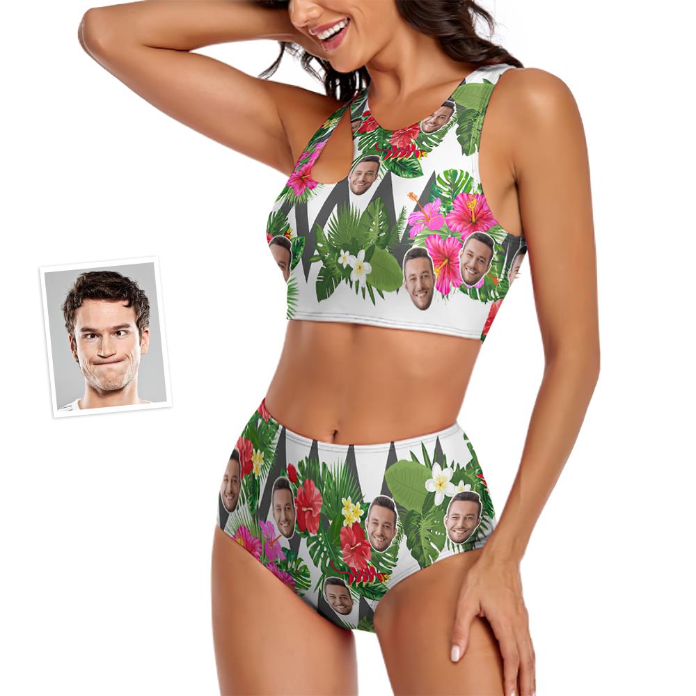 カスタムフェイスビキニ水着彼女へのプレゼント - 熱帯の花