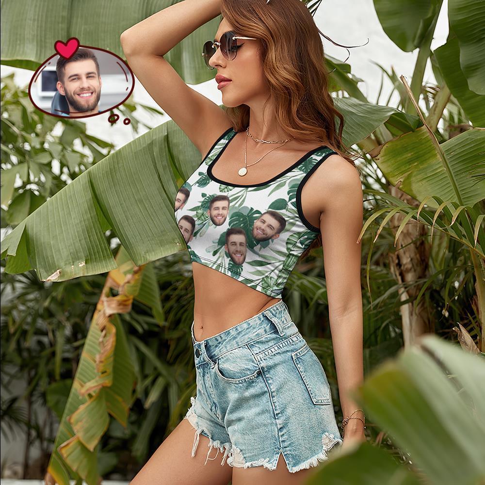 カスタム女性用写真ショートベスト-パーソナライズされた顔ショートベストカットトップス-緑の葉