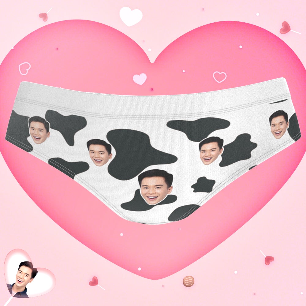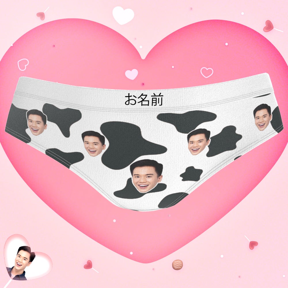 カスタムフォトパンティー-写真入れ名入れ可能な乳牛柄のオリジナルパンツ彼女や妻へのバレンタインギフト