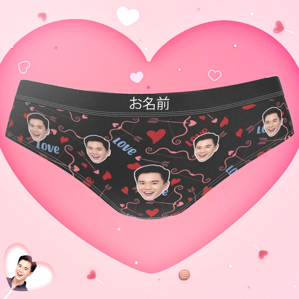 カスタムフォトパンティー-写真入れ名入れ可能なキューピッドの矢柄のオリジナルパンツ彼女や妻へのバレンタインギフト