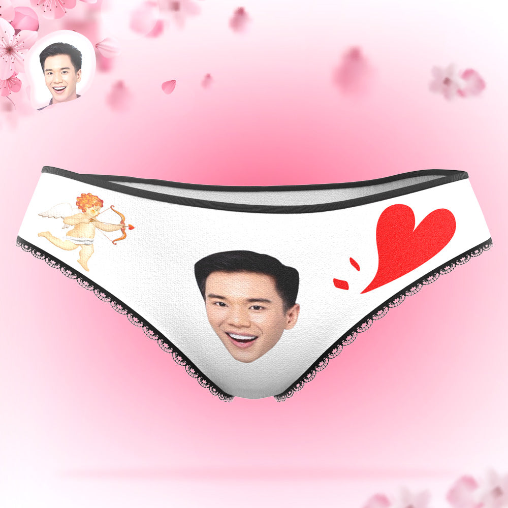 カスタムフォトパンティ-写真入れ可能なキューピッドとハート柄の女性用下着