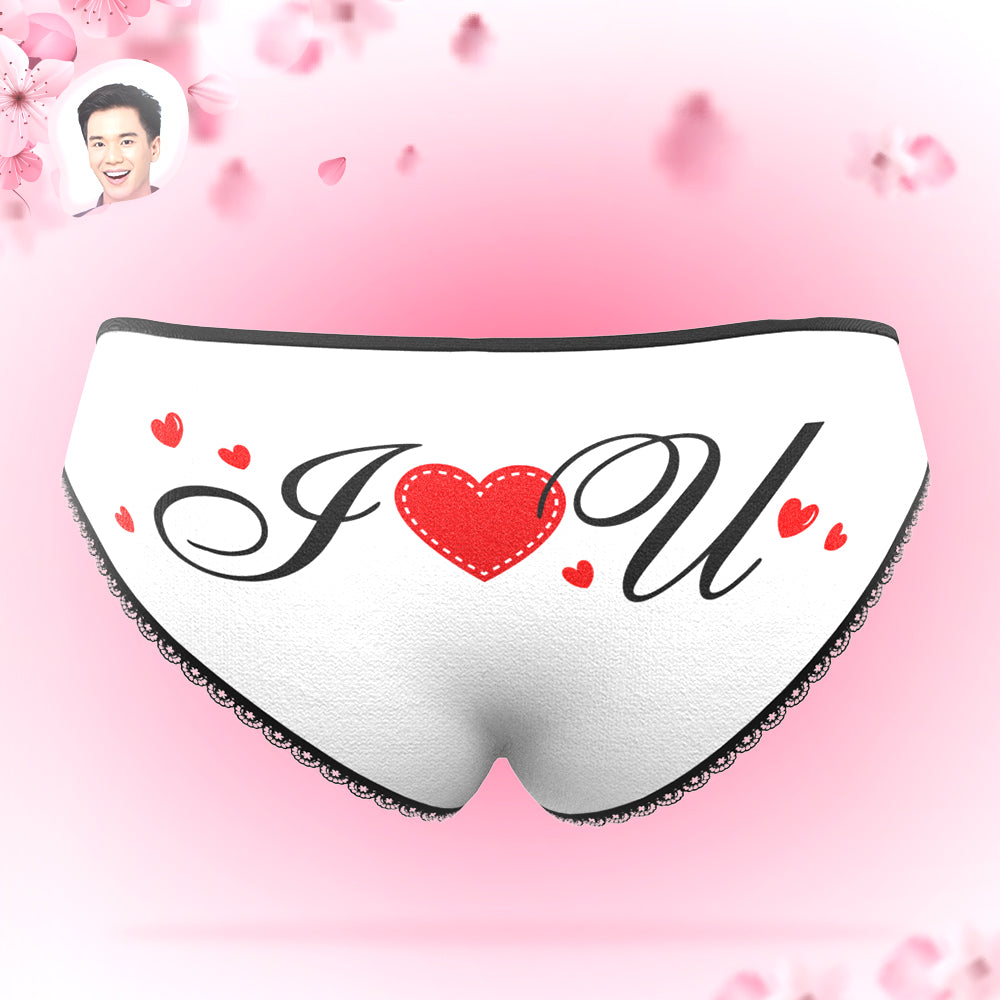 カスタムフォトパンティー-写真入れ可能なオリジナルバレンタインプレゼント女性用下着-ラブレタ柄