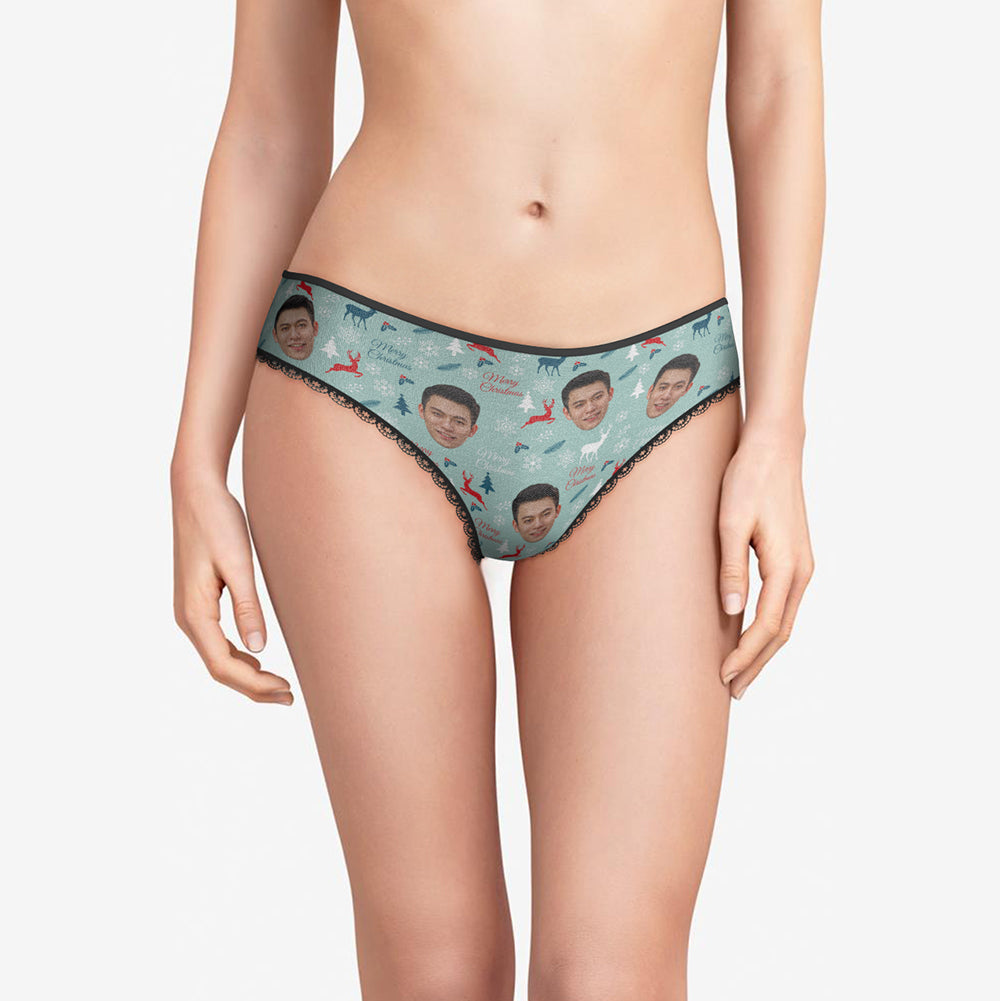カスタムフォトパンティ-写真入れ可能なオリジナルクリスマスプレゼント女性用下着-メリークリスマス