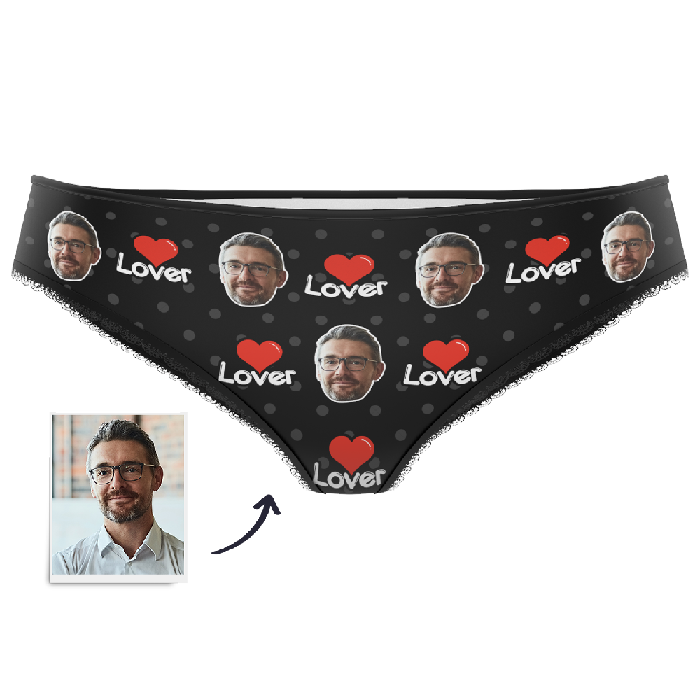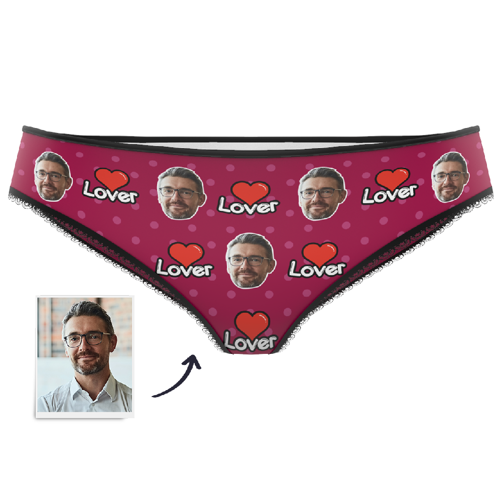 カスタム写真入り下着、赤い唇の模様がプリントされた、カップルへのユニークでセクシーなギフト。写真入りのパーソナライズされたバレンタインデー用下着。